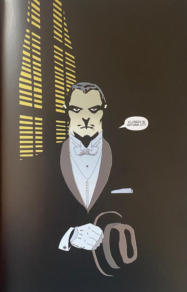 Non che l’apporto di Batman sia inopportuno o inefficace. È piuttosto un male necessario. Nella filologia batmaniana, ma ancor di più ne “Il Lungo Halloween”, la città è infatti sotto il controllo di Carmine “Il Romano” Falcone, spietato boss mafioso che cerca di legittimare i suoi traffici e di eliminare la concorrenza di Salvatore Maroni. Contro di loro si erge un’alleanza fragile tra Batman, il commissario Gordon e il procuratore distrettuale Harvey Dent, mentre, in parallelo, un misterioso killer soprannominato Holiday, inizia a colpire membri delle famiglie criminali di Falcone e Maroni. Mese dopo mese, l’inafferrabile omicida allunga la lista delle proprie vittime, lasciando di volta in volta accanto ai corpi il simbolo della festa durante la quale si è svolto il delitto, insieme ad una pistola calibro .22 e un silenziatore artigianale (la tettarella di un biberon). Tra gli assassinati figura, anche Alberto Falcone, figlio del boss, apparentemente ucciso a Capodanno. La trama si complica quando entrano in gioco altri nemici di Batman: Joker che non accetta la competizione di Holiday, Poison Ivy che manipola Bruce Wayne, Spaventapasseri che droga Batman e Due Facce che emerge dalla psiche torturata di Dent per vendicarsi di Falcone. In tal senso, l’opera di Loeb e Sale si presenta come una sintesi esemplare, quasi un best of del vasto canone batmaniano, capace quindi anche di offrire un accesso privilegiato a chi si accosti per la prima volta alla lunga e intricata vicenda editoriale del Cavaliere Oscuro.