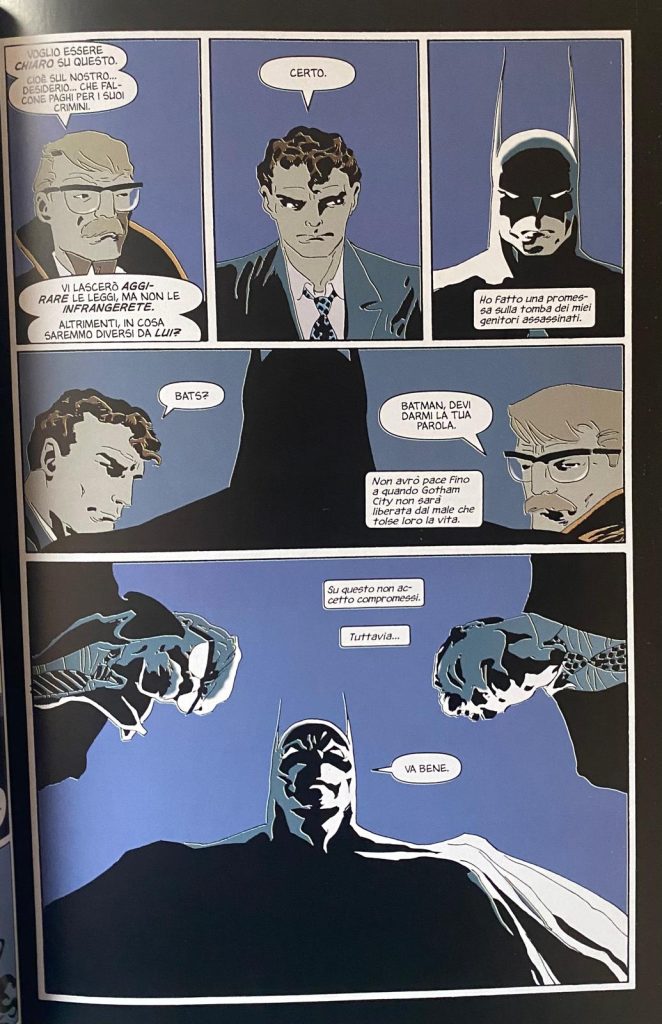 All’inizio della storia, Batman, Dent e Gordon stringono un patto: combattere il crimine insieme, dentro o fuori la legge. È una promessa di fede nella possibilità di cambiare Gotham. Quel patto, però, non regge. Le differenze morali tra i tre emergono, la città li corrompe, e il fallimento culmina con la trasformazione di Dent in Due Facce. La figura di Harvey, in questo, è centrale: è il volto della frattura tra il bene e il male, la sintesi fallita tra la luce e il buio.