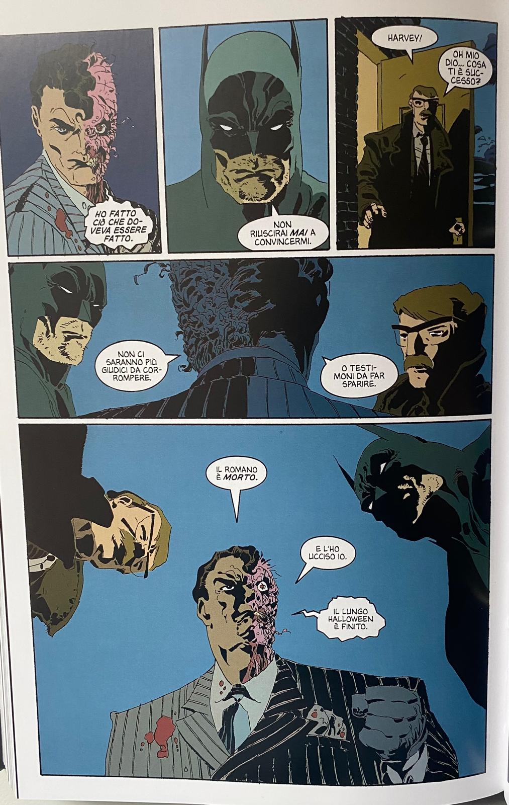 Jeph Loeb, consapevolmente, rifiuta la logica del giallo classico e dopo averci sballotto lati di qua e di là ci dice che non è tanto importante chi abbia fatto cosa, bensì il fatto che ognuno sia disposto a fare tutto, nelle giuste condizioni. Il crimine non è solo nei gesti, ma nelle intenzioni, nei desideri repressi, nei compromessi. “Il Lungo Halloween” è quindi un racconto sul potere che logora, sulla giustizia che fallisce, sull’amore che non basta. Ed è, soprattutto, la storia di una donna che ha fatto tutto il possibile per salvare l’uomo che amava, e ha fallito.