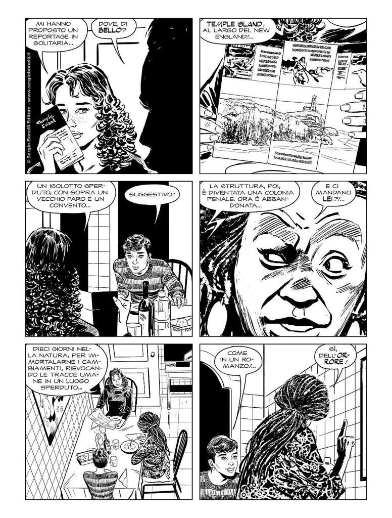 La criminologa che vive e lavora a Garden City, una cittadina a circa un’ora di strada da New York, dunque, per la storia che vede Berardi autore del soggetto e della sceneggiatura in coppia con Lorenzo Calza per i disegni di Claudio Piccoli si sposta dalla sua location abituale per raggiungere Temple Island, uno scoglio, a dir poco sperduto, al largo del New England, sede di un carcere abbandonato da lungo tempo e di un convento. Ma soprattutto e da qui il titolo della storia, si tratta di un lembo di terra bagnato dal mare che ospita un vecchio faro in disuso. Tra l’altro si tratta di un episodio inedito rispetto al consueto stile dei racconti targati “Julia”, visto che in queste pagine l’investigatrice dell’animo accompagna la sorella come assistente per il reportage immerso nella natura selvaggia e autentica dell’isola, insieme alla domestica Emily. Insomma, un modo per mettere china su carta una sorta di Thelma e Louise, il film di maggior notorietà sul tema, che viene anche citato nella storia.